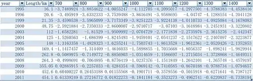 Then a regression between Y and year is performed to decide which K value fits the real data best. The largest R-square means that the model best explains the real data. From the table below, when K=1200 km the R-square is the largest. So the K value is estimated to be 1200.