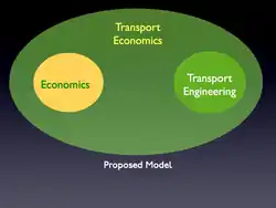 Transport Economics is the study of the movement of people and goods over space and time. It is a branch of economics that deals with the allocation of resources within the transport sector. Historically, it has been thought of as the intersection of microeconomics and civil engineering, as shown on the right.
