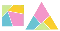 The haberdasher's problem (right), proposed in 1907 by the puzzle composer Henry Dudeney is a dissection of a triangle to a square, with only three cuts.