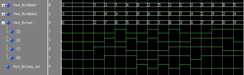 Entity Adder4 Is port ( a,b:in integer Range -8 to 7; sum:out integer Range -16 to 15 ); end Adder4;