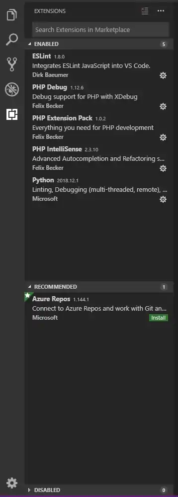 On the left bar, click Extensions. This gives you a bar with installed and recommended extensions (see right side).
