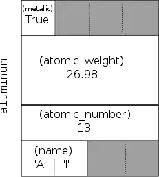 Memory layout diagrams are frequently used to discuss options for data structure layout in memory. For example, Chapter 7.3 of Scott's Programming Language Pragmatics shows several ways of laying out in memory a structure almost identical to the one below (with an example MLD, based on the assumption that each field is word-aligned and a "bool" value will be stored in one byte of memory). Note that Scott's diagrams are more abstract than the one shown here, as they do not include specific values for all fields.