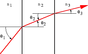 Figure 3.14: Refraction through multiple parallel layers with different refractive indices