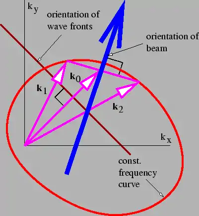 Figure 2.11 summarizes what we have learned about adding plane waves with the same frequency. In general, the beam orientation and the lines of constructive interference are not perpendicular to the wave fronts. This only occurs when the wave frequency is independent of wave vector direction.