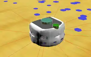 The odor simulation plugin supports multiple odor sources to be placed in the environment. Each source can release a different type of chemicals. A source is modeled as a circular area in which filaments appear.