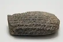A clay tablet with Babylonain writing