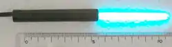 The fluorescent light bulb creates light by sending electricity through a gas. This produces visible light, but also some ultraviolet light, which is invisible to the human eye. To make the ultraviolet visible, the inside of a fluorescent light bulb is coated in a substance that absorbs ultraviolet and changes it to visible light. This brightens the light from the fluorescent light.