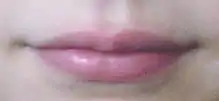 Imagine it this way: 2 stacks of red bright "logs". But more human like. And that's what the mouth looks like when shut.
