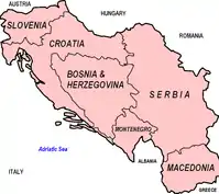 Yugoslavia — a union of present-day Serbia, Croatia, Slovenia, Bosnia and Herzegovina, Macedonia, and Montenegro that existed from 1918 until the 1990s.