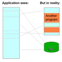 When a program is started (e.g. a web browser or a word processor), it runs in its own process. A process contains its own "virtual" memory space and resources. Its memory is "virtual" because the process thinks memory that is at address 0x12345678 may actually be at address 0x65f7a678 in physical memory. Similarly, two different processes may have different data stored at (to them) 0x00401000. This is implemented by dividing memory into chunks called pages; on x86 systems one page is 4 kilobytes in size. Each page can have its own set of attributes, such as read-only/read-write. The CPU has a transparent mechanism for translating virtual addresses to physical addresses through a page table which the operating system sets up.