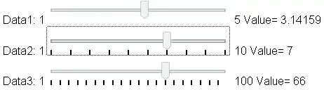 The first control just selects decimals from 1 to 5. The second uses the step to return only integers. The last has a range of 1 to 100 in increments of 5. Note that the value is 66 and you cannot set a value from 62 to 65.
