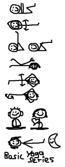 8. Meditation = We rise up in a sitting position (heel seat or cross-legged) and put the hands in our lap (or on the legs). The back is straight and the belly relaxed. We think the mantra "Om Shanti" until our mind comes to rest.