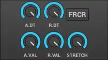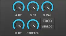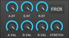 The stretch value: how the envelope is stretched according to the note. On the higher notes the envelopes are shorter than lower notes. The stretch range is from 0 (leftmost) to 200% (rightmost). 200% means that the envelope is stretched about 4 times/octave.