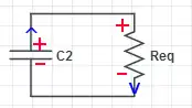 The discharging analysis is capacitive. Going to discharge through the parallel combination of R2 and R3 with an initial voltage of VC2.
