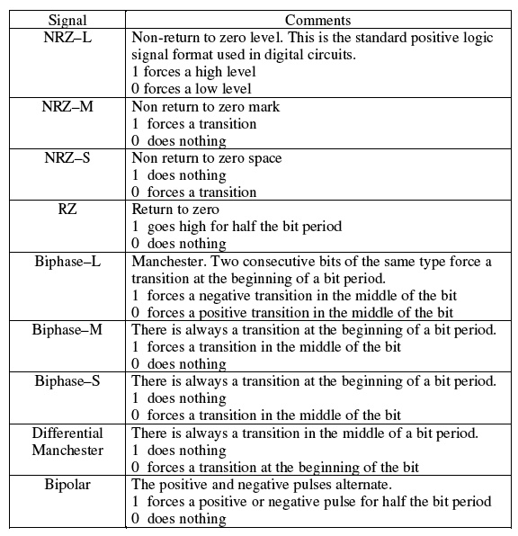 | Manchester | High bandwidth | Good clock recovery | No DC component |