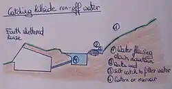 - ↑ Gravity-fed system trough height difference also sometimes enough for pressured water collection system