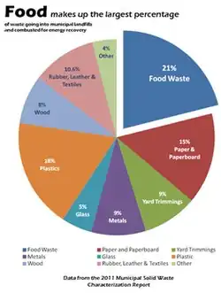 Food Waste in the United States is the single largest type of waste entering the landfills today.[1] The issue of food waste has grown to such an extent as to demand action from the government of the United States as well as its citizens. This can be seen through the emergence of legislation, organizations, such as Boulder Food Rescue, who are dedicated to changing the food system, and supermarkets lowering prices on expired food to prevent waste.[2] This is an issue that needs to be addressed technologically as well as socially.