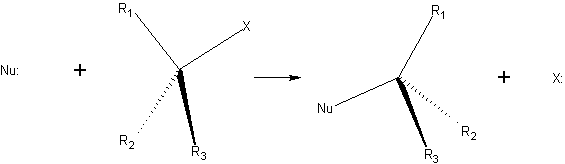 General nucleophilic substitution reactionsNu:- + R—X → R—Nu + X:- |