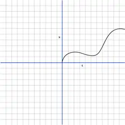 For example, say we have a particle with position function x(t)= 2t. Its position at t = 3 is x(3) = 2(3) = 6 m along the x-axis.