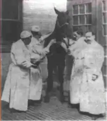 On October 2, 1901, a former milk wagon horse named Jim showed signs that he had contracted tetanus and was euthanized. He was used to produce serum containing diphtheria antitoxin (antibodies against diphtheria toxin). Jim produced over 30 US quarts (7.5 US gallons; 28.5 litres) of diphtheria antitoxin in his career. After the death of a girl in St. Louis, Missouri, was traced back to Jim's contaminated serum, it was discovered that serum dated September 30 contained tetanus in its incubation phase. This contamination could have easily been discovered if the serum had been tested prior to its use. Furthermore, samples from September 30 had also been used to fill bottles labeled "August 24", while actual samples from the 24th were shown to be free of contamination.[1]