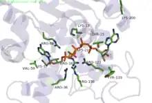 - ↑ Reinstein J, Gilles AM, Rose T, Wittinghofer A, Saint Girons I, Bârzu O, Surewicz WK, Mantsch HH (May 1989). "Structural and catalytic role of arginine 88 in Escherichia coli adenylate kinase as evidenced by chemical modification and site-directed mutagenesis". The Journal of Biological Chemistry. 264 (14): 8107–12. doi:10.1016/S0021-9258(18)83156-8. PMID 2542263.