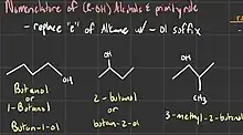 - ↑ Reusch W (2 October 2013). "Nomenclature of Alcohols". chemwiki.ucdavis.edu/. Retrieved 17 March 2015.