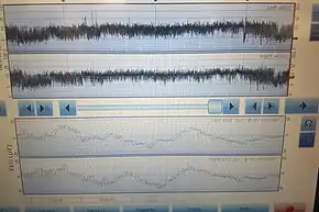 Amplitude integrated electroencephalography (aEEG), cerebral function monitoring (CFM) or continuous electroencephalogram (CEEG) is a technique for monitoring brain function in intensive care settings over longer periods of time than the traditional electroencephalogram (EEG), typically hours to days. By placing electrodes on the scalp of the patient, a trace of electrical activity is produced which is then displayed on a semilogarithmic graph of peak-to-peak amplitude over time; amplitude is logarithmic and time is linear. In this way, trends in electrical activity in the cerebral cortex can be interpreted to inform on events such as seizures or suppressed brain activity.[1] aEEG is useful especially in neonatology where it can be used to aid in diagnosis of hypoxic ischemic encephalopathy (HIE), and to monitor and diagnose seizure activity.