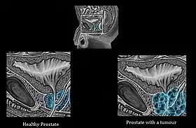 ![]() Differences between a healthy prostate and a prostate with a tumour | |