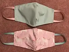 A cloth face mask is worn over the mouth and nose and made of common textiles such as cotton. Masks vary widely in effectiveness, depending on factors such as material, fit and seal, and the number of layers. They are usually less effective at filtering than surgical masks and offer much less protection.[16][17] Unlike disposable masks, there are no required standards for cloth masks.[18]