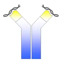 Anti-Ro and anti-La antibodies, also known as SS-A and SS-B, respectively, are commonly found in primary Sjögren's syndrome, an autoimmune disorder that affects the exocrine glands. The presence of both antibodies is found in 30–60% of Sjögren's syndrome, anti-Ro antibodies alone are found in 50–70% of Sjögren's syndrome and 30% of SLE with cutaneous involvement, and anti-La antibodies are rarely found in isolation.[11][17] Anti-La antibodies are also found in SLE; however, Sjögren's syndrome is normally also present.[18] Anti-Ro antibodies are also found less frequently in other disorders including autoimmune liver diseases, coeliac disease, autoimmune rheumatic diseases, cardiac neonatal lupus erythematosus and polymyositis.[19][20] During pregnancy, anti-Ro antibodies can cross the placenta and cause heart block[21][22] and neonatal lupus in babies.[23] In Sjögren's syndrome, anti-Ro and anti-La antibodies correlate with early onset, increased disease duration, parotid gland enlargement, disease outside the glands and infiltration of glands by lymphocytes.[12] Anti-Ro antibodies are specific to components of the Ro-RNP complex, comprising 45kDa, 52kDa, 54kDa and 60kDa proteins and RNA. The 60kDa DNA/RNA binding protein and 52kDa T-cell regulatory protein are the best characterised antigens of anti-Ro antibodies. Collectively, these proteins are part of a ribonucleoprotein (RNP) complex that associate with the human Y RNAs, hY1-hY5. The La antigen is a 48kDa transcription termination factor of RNA polymerase III, which associates with the Ro-RNP complex.[16][17][24][25]