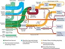 The economic boundaries define which market effects to include in the calculation, if any. Changed market conditions can lead to small or large changes in carbon emissions and absorptions from supply chains and forests,[27] for instance changes in forest area as a response to changes in demand. Macroeconomic events/policy changes can have impacts on forest carbon stock.[ai] Like with indirect land use changes, economic changes can be difficult to quantify however, so some researchers prefer to leave them out of the calculation.[aj]