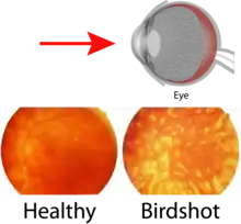 Birdshot chorioretinopathy, now commonly named birdshot uveitis or HLA-A29 uveitis,[1] is a rare form of bilateral posterior uveitis affecting both eyes. It causes severe, progressive inflammation of both the choroid and retina.[2][3][4]