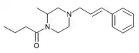 Bucinnazine (AP-237, 1-butyryl-4-cinnamylpiperazine) is an opioid analgesic drug that was widely used in China to treat pain in cancer patients as of 1986.[1] It is one of the most potent compounds among a series of piperazine-amides first synthesized and reported in Japan in the 1970s.[2][3][4] Bucinnazine has analgesic potency comparable to that of morphine, but with a relatively higher therapeutic index.