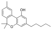 The most prevalent psychoactive substances in cannabis are cannabinoids, particularly THC. Some varieties, having undergone careful selection and growing techniques, can yield as much as 34% THC.[12] Another psychoactive cannabinoid present in Cannabis sativa is tetrahydrocannabivarin (THCV), but it is only found in small amounts and is a cannabinoid antagonist.[13]