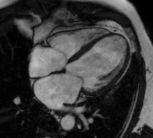 Functional and structural information is acquired using bSSFP cine sequences. These are usually retrospectively-gated and have intrinsically high contrast in cardiac imaging due to the relatively high T2:T1 ratio of blood compared to myocardium. Images are typically planned sequentially to achieve the standard cardiac planes used for assessment. Turbulent flow causes dephasing and signal loss allowing valvular disease to be qualitatively appreciated. The left ventricular short axis cines are acquired from base to apex and are used for quantifying end-diastolic and end-systolic volumes, as well as myocardial mass. Tagging sequences excite a grid pattern that deforms with cardiac contraction allowing strain to be assessed.
