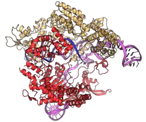 - 1 2 Anders C, Niewoehner O, Duerst A, Jinek M (September 2014). "Structural basis of PAM-dependent target DNA recognition by the Cas9 endonuclease". Nature. 513 (7519): 569–573. Bibcode:2014Natur.513..569A. doi:10.1038/nature13579. PMC 4176945. PMID 25079318.