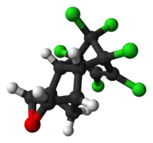 There is an interesting metabolite in rat urine, first described by Klein.[13] The methylene group of the dieldrin links to one end of the ClC:CCl group to form a cage structure. The other end of the original ClC:CCl is converted to a ketone. The same metabolite is produced from the photoisomer of dieldrin, in which the same cage structure is produced, but the other end of the original chlorinated double bond forms a CHCl group.
