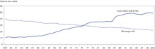 New agricultural technologies have led to an overall reduction in the cost of food relative to household income, especially in high-income countries. In his popular book, "The Omnivore's Dilemma," the journalist Michael Pollan linked the subsidies offered to farmers of corn, soy, wheat, and rice through the U.S. farm bill to over-consumption of calories derived from these crops and to rising obesity rates.[41] While increased consumption of foods derived from these commodities is correlated with an increase in BMI (at the population level), no current research supports a causal relationship between farm subsidies and obesity.[42] From a policy perspective, the cost of sugar would actually decrease in the US if the commodity support programs in the farm bill were removed, largely due to the tariffs in the farm bill that restrict the importation of lower-cost sugar available on the global market.[43]
