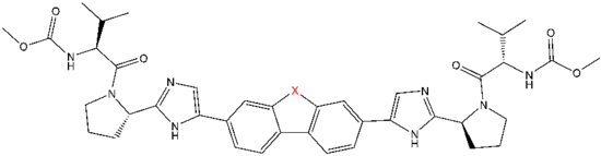 - 1 2 3 Lemm, J. A.; Leet, J. E.; O'Boyle, D. R.; Romine, J. L.; Huang, X. S.; Schroeder, D. R.; Alberts, J.; Cantone, J. L.; Sun, J.-H.; Nower, P. T.; Martin, S. W.; Serrano-Wu, M. H.; Meanwell, N. A.; Snyder, L. B.; Gao, M. (16 May 2011). "Discovery of Potent Hepatitis C Virus NS5A Inhibitors with Dimeric Structures". Antimicrobial Agents and Chemotherapy. 55 (8): 3795–3802. doi:10.1128/AAC.00146-11. PMC 3147613. PMID 21576451.