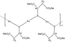 Disodium aurothiomalate is a chemical compound with the formula AuSCH(CO2Na)CH2CO2Na. In conjunction with its monoprotonated derivative, this coordination complex or closely related species are used to treat rheumatoid arthritis, under the tradename Myochrysine.[1] The thiomalate is racemic in most formulation.