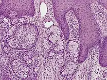 - ↑ Swanson, P. E.; Cherwitz, D. L.; Neumann, M. P.; Wick, M. R. (1987–2004). "Eccrine sweat gland carcinoma: an histologic and immunohistochemical study of 32 cases*". Journal of Cutaneous Pathology. 14 (2): 65–86. doi:10.1111/j.1600-0560.1987.tb00477.x. ISSN 0303-6987. PMID 2439558. S2CID 1897717.