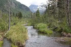 In general, freshwater bodies such as streams can be strongly affected by heatwaves. However, the impact could vary strongly depending on the presence or absence of predators in the stream community. In their absence, the impacts are much more severe and the local extinction of most species could occur, homogenizing the community.[99] Species of fish living in cold or cool water can see a reduction in population of up to 50% in the majority of U.S. freshwater streams, according to most climate change models.[100] The increase in metabolic demands due to higher water temperatures, in combination with decreasing amounts of food will be the main contributors to their decline.[100] Additionally, many fish species (such as salmon) use seasonal water levels of streams as a means of reproducing, typically breeding when water flow is high and migrating to the ocean after spawning.[100] Because snowfall is expected to be reduced due to climate change, water runoff is expected to decrease which leads to lower flowing streams, affecting the spawning of millions of salmon.[100] To add to this, rising seas will begin to flood coastal river systems, converting them from fresh water habitats to saline environments where indigenous species will likely perish. In southeast Alaska, the sea rises by 3.96 cm/year, redepositing sediment in various river channels and bringing salt water inland.[100] This rise in sea level not only contaminates streams and rivers with saline water, but also the reservoirs they are connected to, where species such as sockeye salmon live. Although this species of Salmon can survive in both salt and fresh water, the loss of a body of fresh water stops them from reproducing in the spring, as the spawning process requires fresh water.[100]