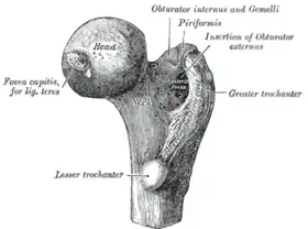 - ↑ Squire KR, Fessler JF, Toombs JP, Van Sickle DC, Blevins WE (1991). "Femoral head ostectomy in horses and cattle". Vet Surg. 20 (6): 453–8. doi:10.1111/j.1532-950X.1991.tb00354.x. PMID 1369530.