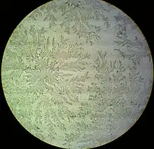 The fern test is a medical laboratory test used in obstetrics and gynecology. The name refers to the detection of a characteristic "fern like" pattern of vaginal secretions when a specimen is allowed to dry on a glass slide and is viewed under a low-power microscope. The fern test is most commonly used to provide evidence of the presence of amniotic fluid and is used in obstetrics to detect preterm premature rupture of membranes and/or the onset of labor. It also may provide indirect evidence of ovulation and fertility, although it does not predict the time of ovulation.[1]