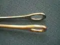 A foerster clamp is a surgical clamp with a round eyelet.[1] Also known as a sponge clamp, or sponge stick. Used for atraumatically grasping lung tissue in thoracic surgery. When grasping a surgical sponge in the jaws, Foerster clamps are commonly used for removing small amounts of fluids from the operative area and applying pressure to sites of bleeding.[1] May also be used for tissue dissection. Invented by David William Foerster of Oklahoma City, Oklahoma, who pioneered sex change operations in the United States.
