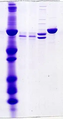 Proteins separated by SDS-PAGE, Coomassie brilliant blue staining