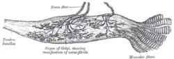 ![]() Labeled diagram of Golgi tendon organ from the human Achilles tendon. | |