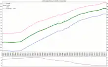 In 1999, the Howard government introduced the private health insurance rebate scheme, under which the government contributed up to 30% of the private health insurance premium of people covered by Medicare. Including these rebates, Medicare is the major component of the total Commonwealth health budget, taking up about 43% of the total. The program was estimated to cost $18.3 billion in 2007–08.[3] In 2009 before means testing was introduced, the private health insurance rebate was estimated to cost $4 billion, around 20% of the total budget.[4] The overall figure was projected to rise by almost 4% annually in real terms in 2007.[3] In 2013–14 Medicare expenditure was $19 billion and expected to reach $23.6 billion in 2016/7.[5] In 2017–18, total health spending was $185.4 billion, equating to $7,485 per person, an increase of 1.2%, which was lower than the decade average of 3.9%. The majority of health spending went on hospitals (40%) and primary health care (34%). Health spending accounted for 10% of overall economic activity.[6][7]