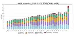 - ↑ Health expenditure and financing. OECD data. Also includes some non-OECD countries at the end of the list. OECD = Organisation for Economic Co-operation and Development. Choose options from dropdown menus. See the "Financing scheme" menu. For the table pick "All financing schemes". Set "Function" menu to "Current expenditure on health (all functions)". Set "Provider" menu to "All providers". Set "Measure" menu to "Share of gross domestic product". Pick years. Pick countries. Then export to Excel, and open in a spreadsheet such as freeware LibreOffice Calc. Clean up table and copy to visual editor in a sandbox. See Help:Table.