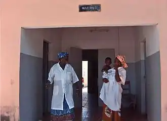 The national health system is divided into three levels: regional hospitals, district health centers, and health posts.[7] Rural health care is divided into three parts: health centers, health posts, and health points. Health centers are at the top, with one to two medical doctors and 15-20 people as part of the health staff. Health posts are below these, with four or five health workers. At the lowest level are health points, which house one or two health agents and a midwife.[7] The system has been the subject of much criticism, especially because of the increasing demands of profitability and the corruption in this part of the government as in other domains of public life.